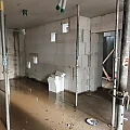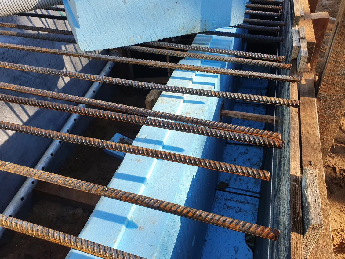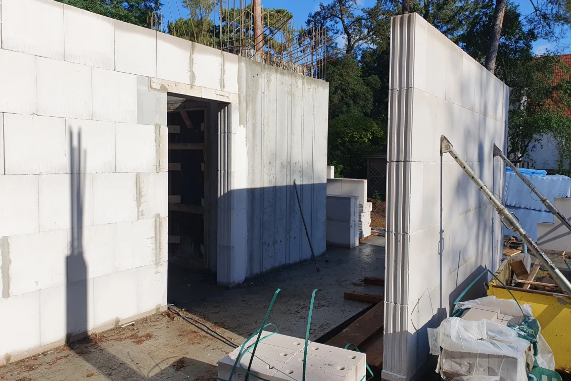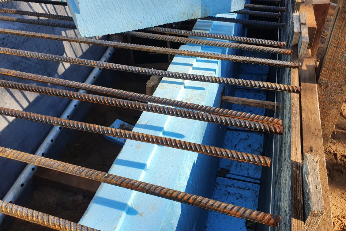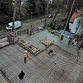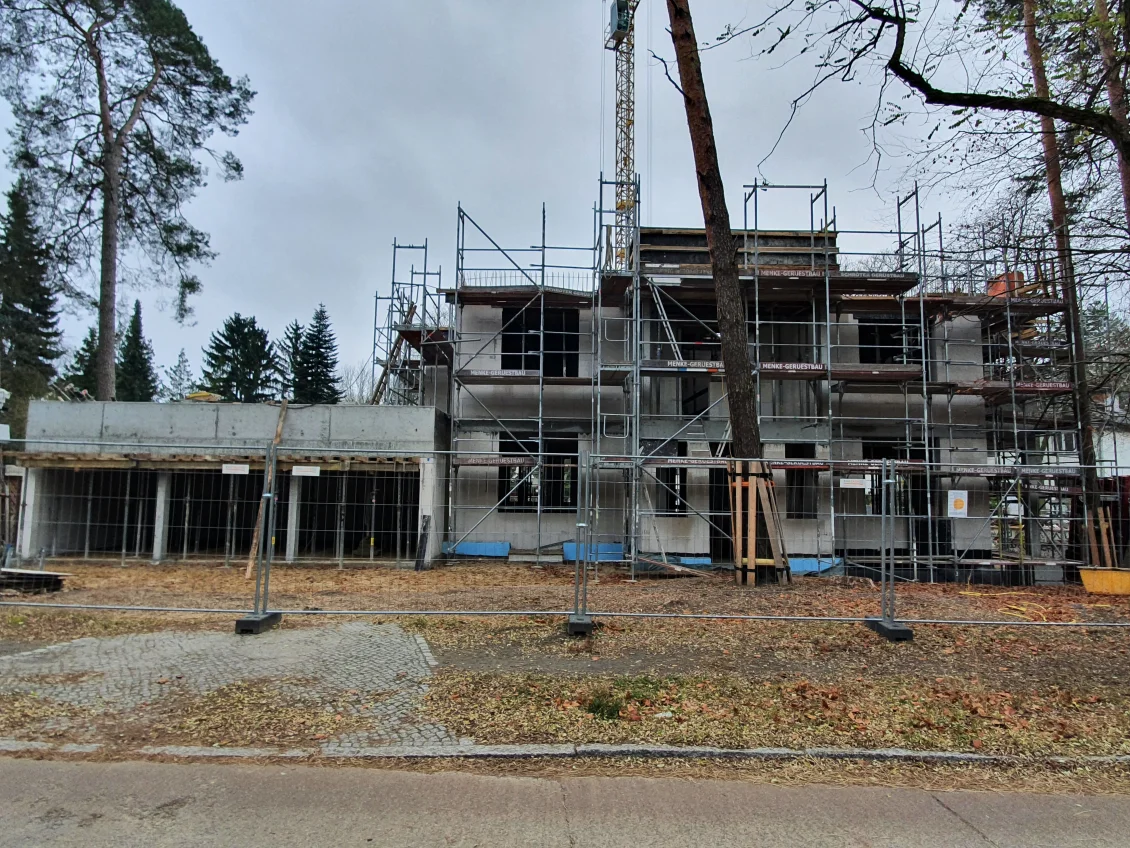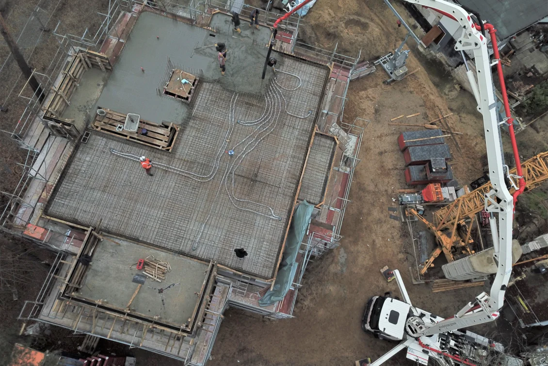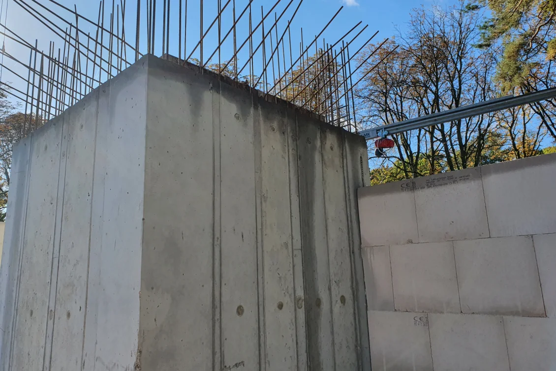 Das Untergeschoss ist jetzt über die Maisonette-Treppe der Gartengeschoss-Wohnung erreichbar. Da die Kellerwände mit den als Halbfertigteile hergestellten “Filigrandecken” abgeschlossen werden, lassen sich die ersten Raumproportionen erkennen und wie viel Tageslicht durch die großen Fensteröffnungen in die Räume fällt.