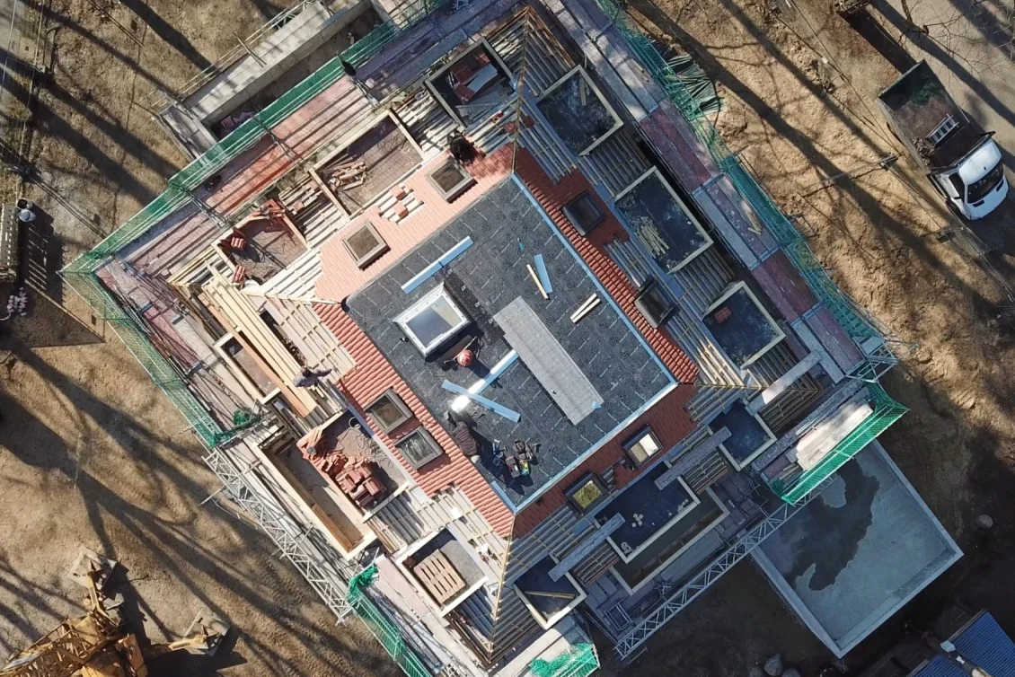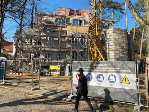 Unser Haus bekommt seine zukünftige “Kopfbedeckung”. Die Dachdecker- & Klempnerarbeiten sind in vollem Gange und täglich verändert sich das Aussehen unseres Gebäudes.