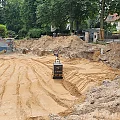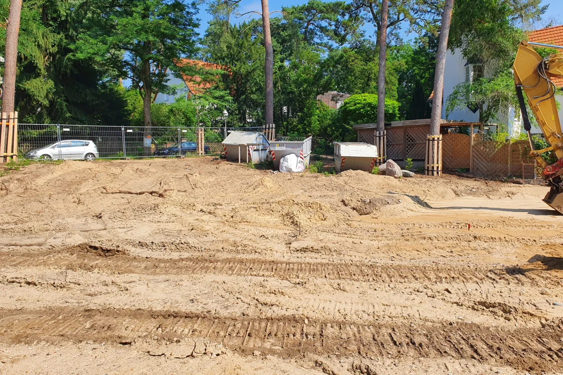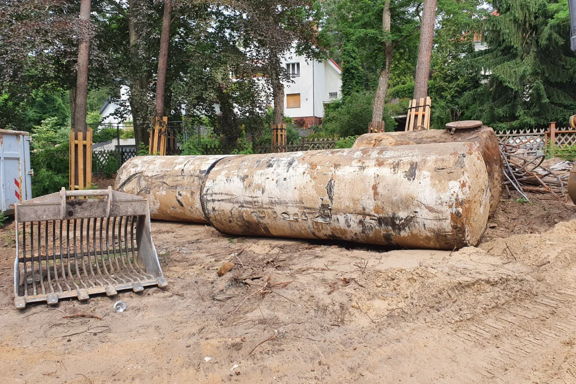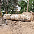 Die großen Öltankanlagen werden geborgen, vor Ort zerteilt und entsorgt. Damit ist der Abbruch abgeschlossen. Insgesamt müssen jetzt über 700 m3 Boden bewegt werden, wobei die Bereiche außerhalb der Baugrube wieder verfüllt und verdichtet werden.