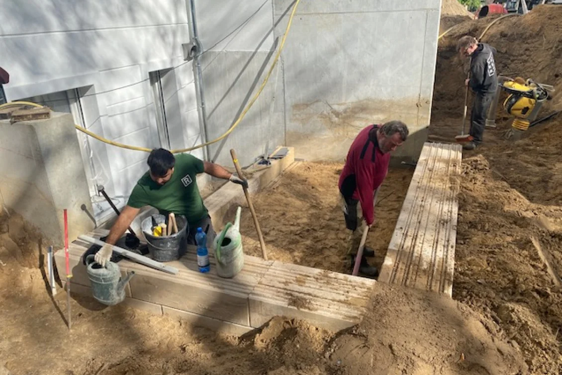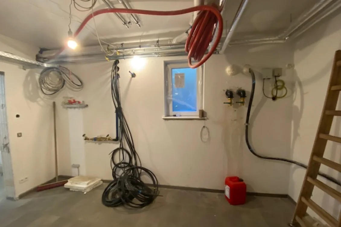 Alle benötigten Hausanschlüsse, Wasser, Strom und die Telekommunikation sind jetzt installiert und funktionsfähig. Die Verteilung auf die einzelnen Geschosse wird abgeschlossen.